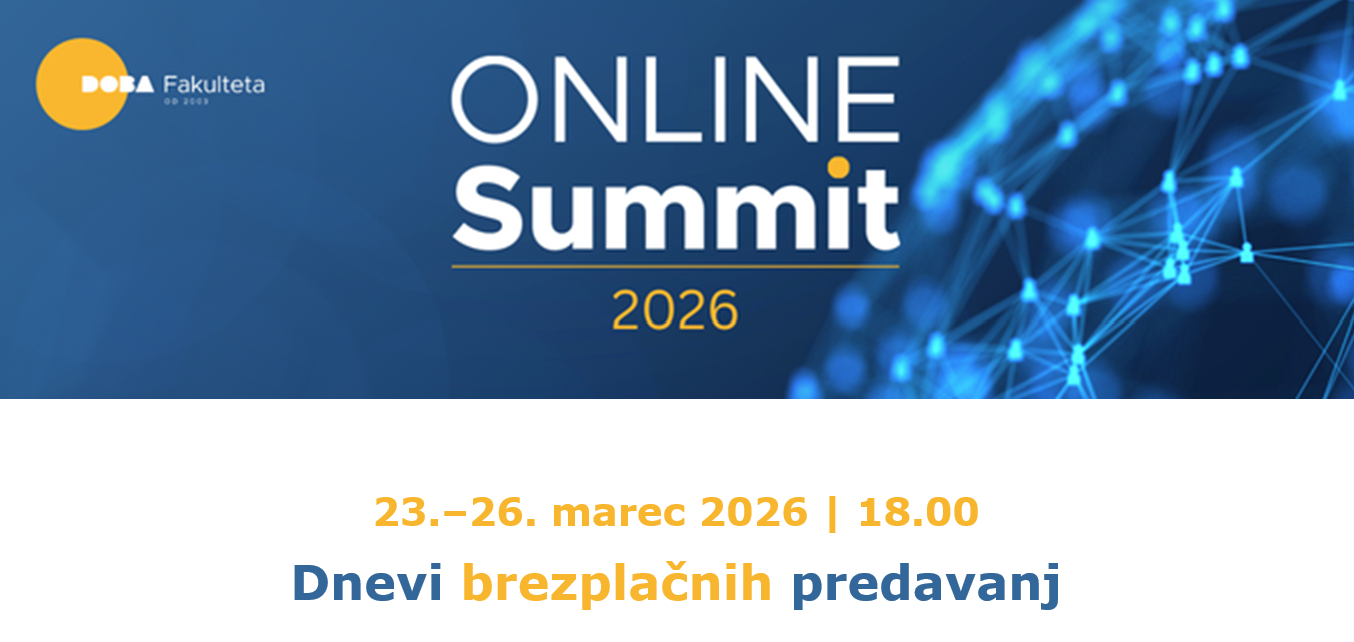 Članica SRIP PMiS, DOBA Fakulteta vabi na 8. ONLINE SUMMIT 2026, ki bo od 23. do 26. 3. 2026 združil štiri večere, štiri izjemne strokovnjake in eno skupno nit: razumeti spremembe, ki oblikujejo našo prihodnost – in znati v njih delovati samozavestno, odgovorno ter strateško. Od globalnih kriz in vloge Evrope, do zavestnega voditeljstva nove dobe. Od psiholoških temeljev zaupanja v organizacijah, do naslednjega vala umetne inteligence. Udeležba je brezplačna, potrebna je prijava.