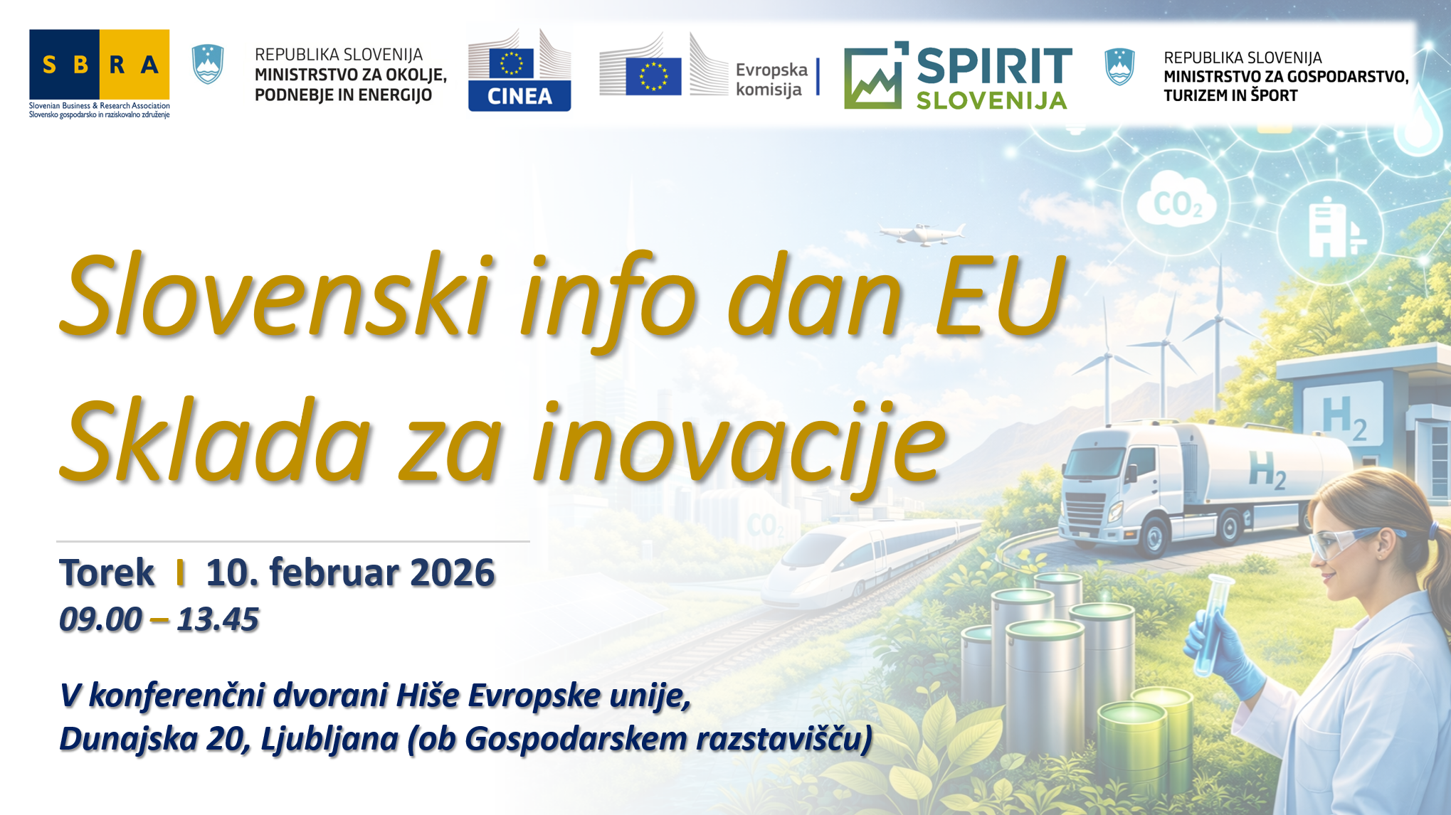 Slovensko gospodarsko in raziskovalno združenje (SBRA) iz Bruslja v sodelovanju z Ministrstvom za okolje, podnebje in energijo, EU agencijo CINEA in Evropsko komisijo vabijo na Slovenski info dan EU Sklada za inovacije, ki bo potekal 10. 2. 2026 od 9.00 do 13.45 v konferenčni dvorani Hiše Evropske unije, Dunajska 20, Ljubljana (ob Gospodarskem razstavišču). V […]