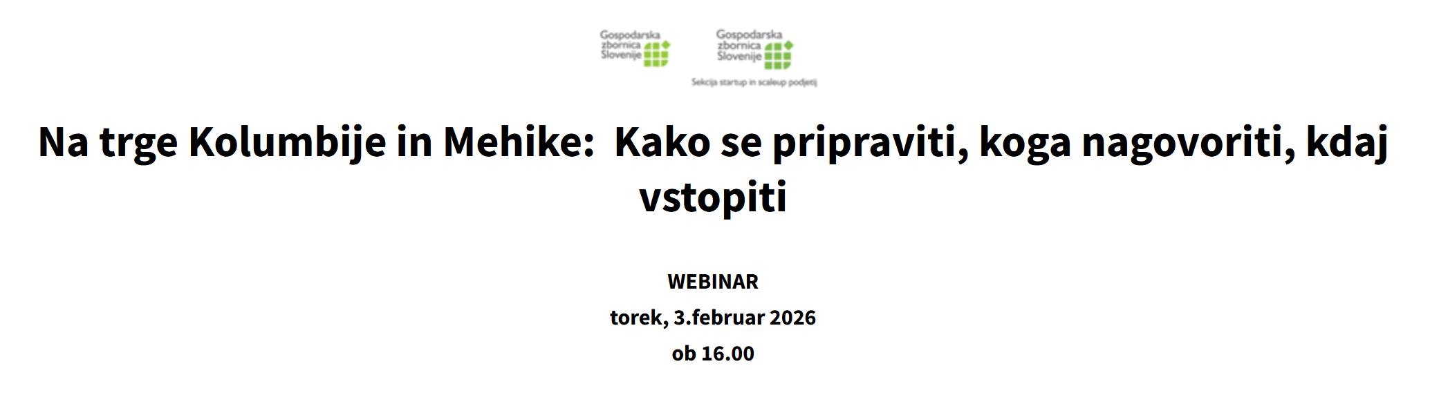 Center za mednarodno poslovanje (CEMP) in Sekcija startup in scaleup podjetij pri GZS v sodelovanju s partnerji v Latinski Ameriki in Mehiki organizirata webinar »Na trge Kolumbije in Mehike: Kako […]